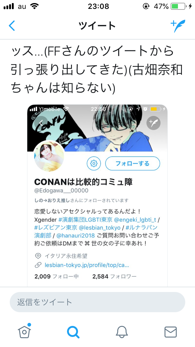 翌日の午後10時の古畑奈和の投稿:「舞台役者で女の子(ゆかりちゃん)です」