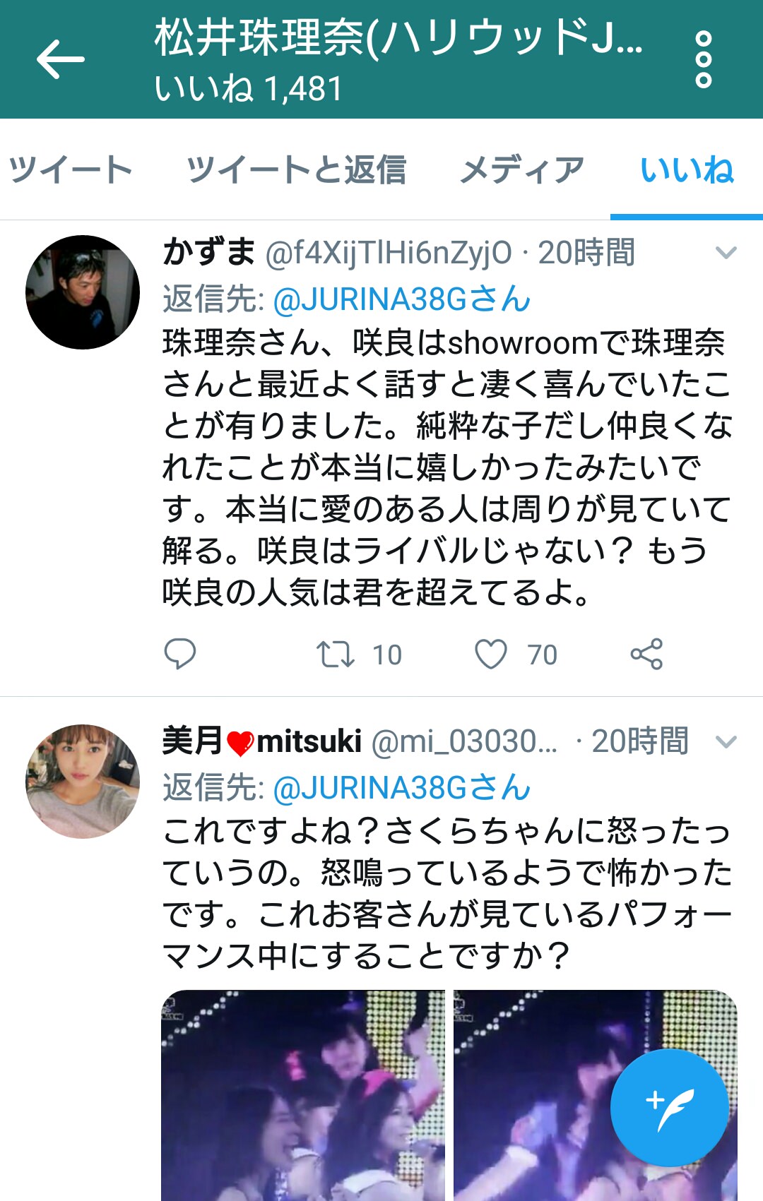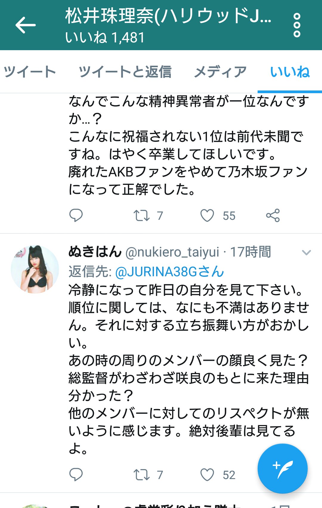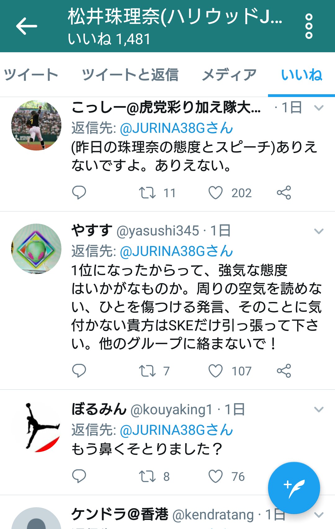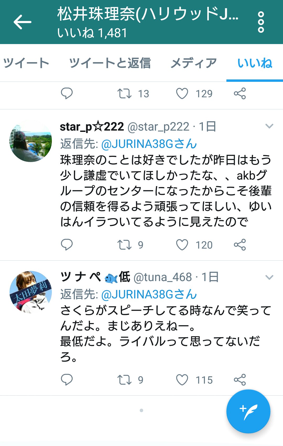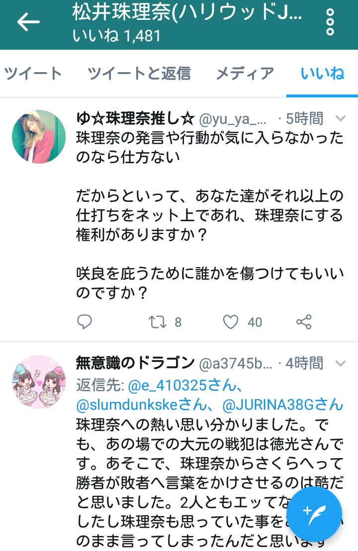 ■SKE48松井珠理奈ツイッター いいね欄