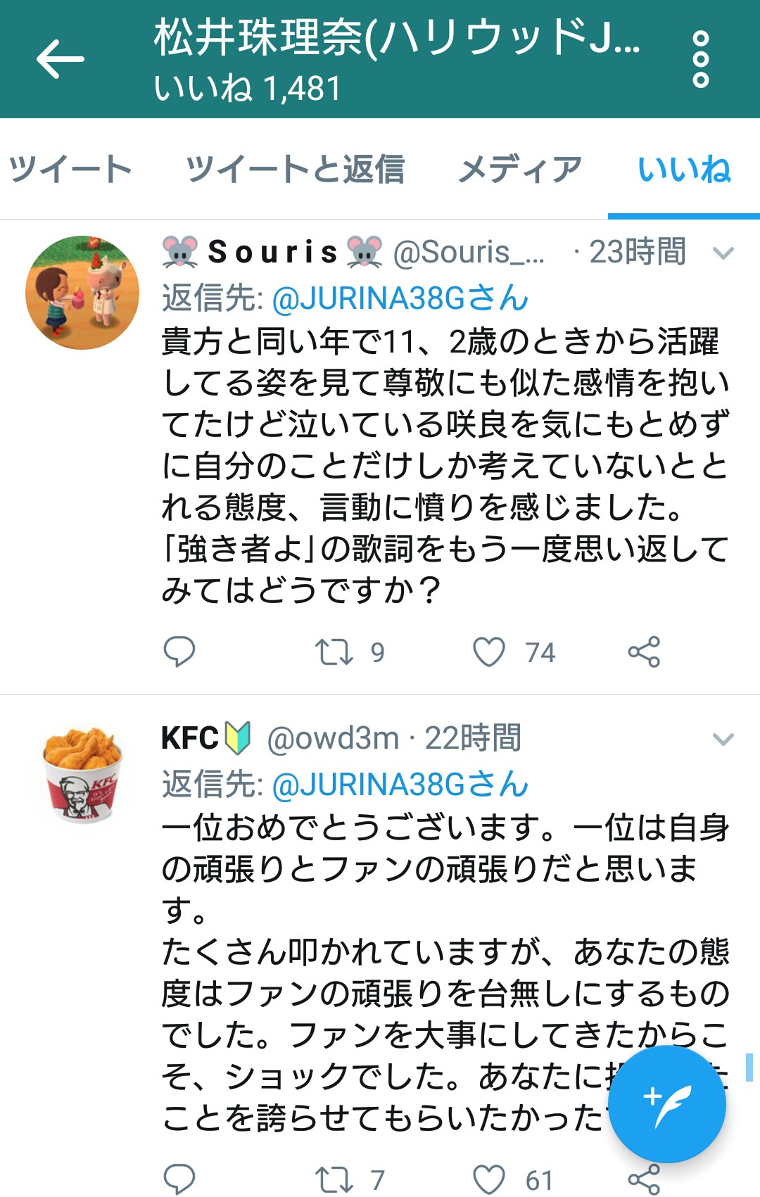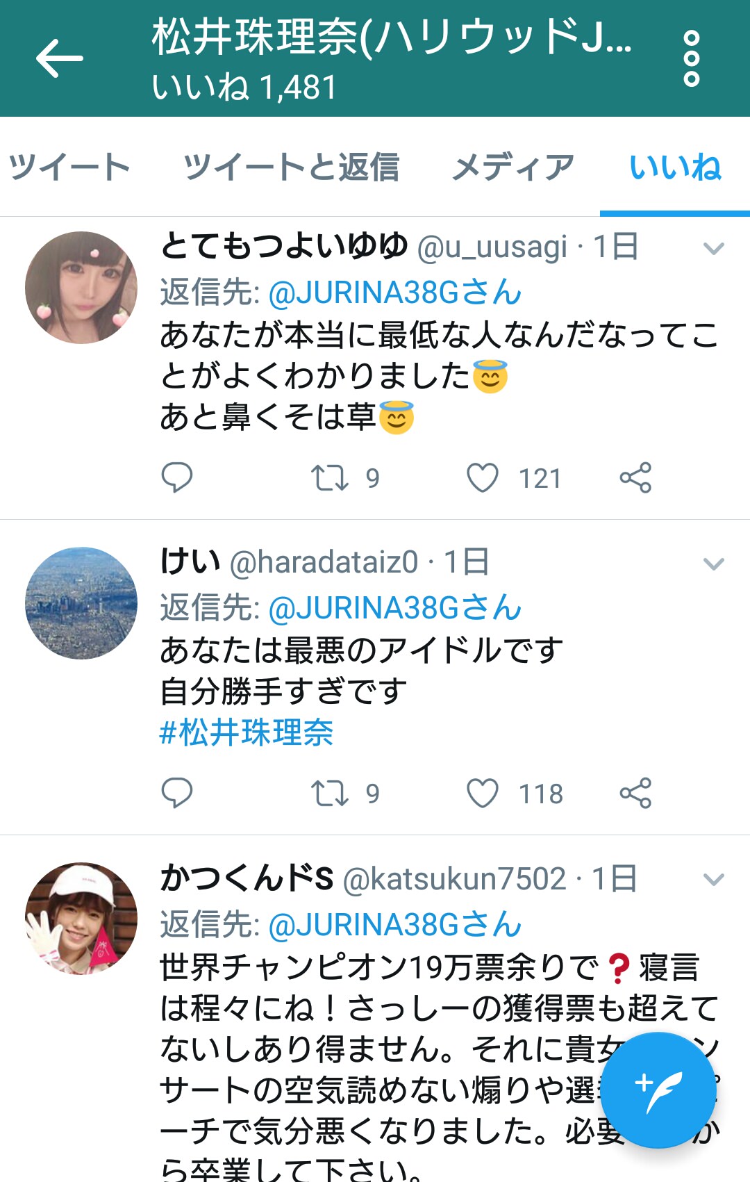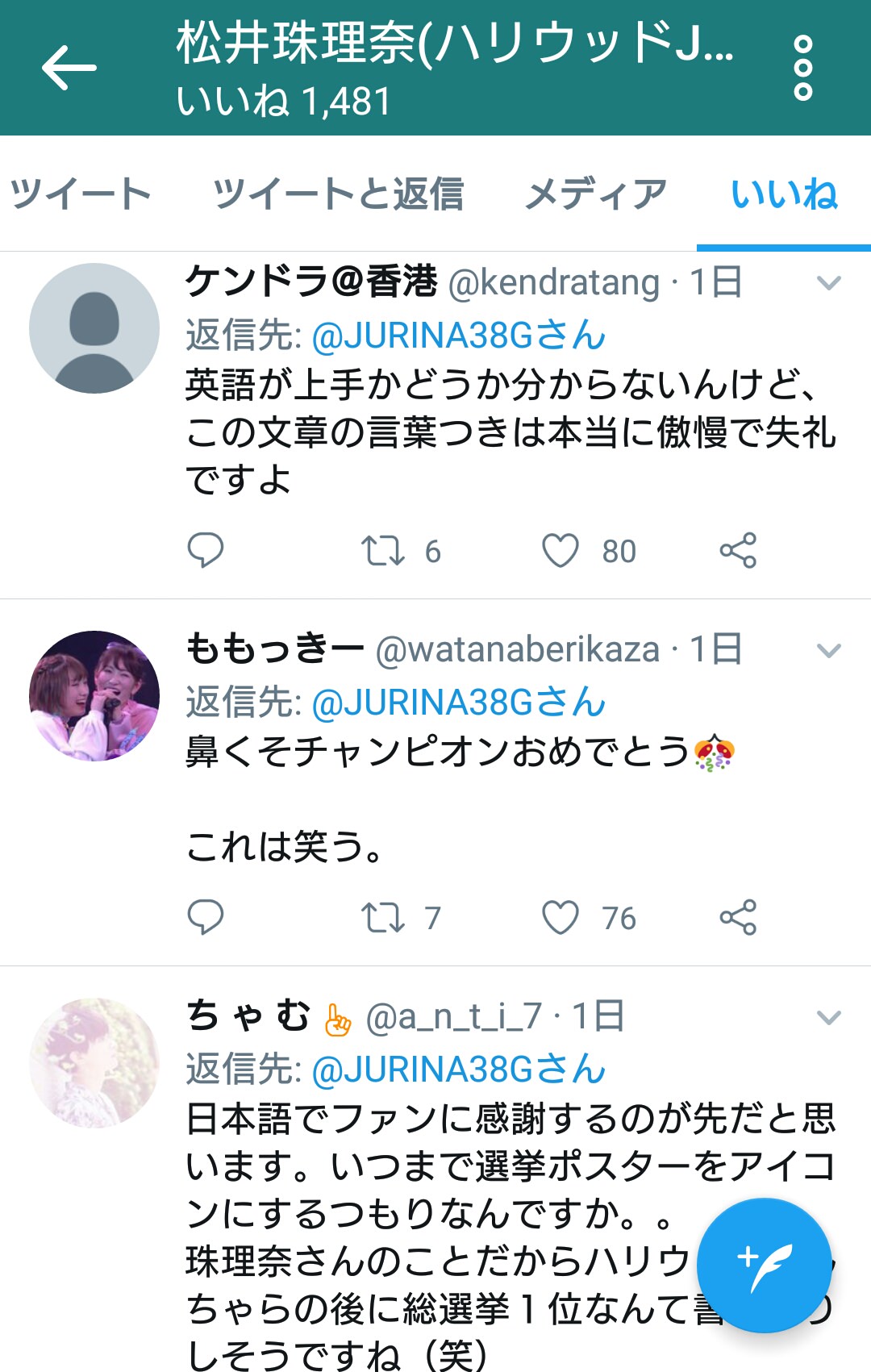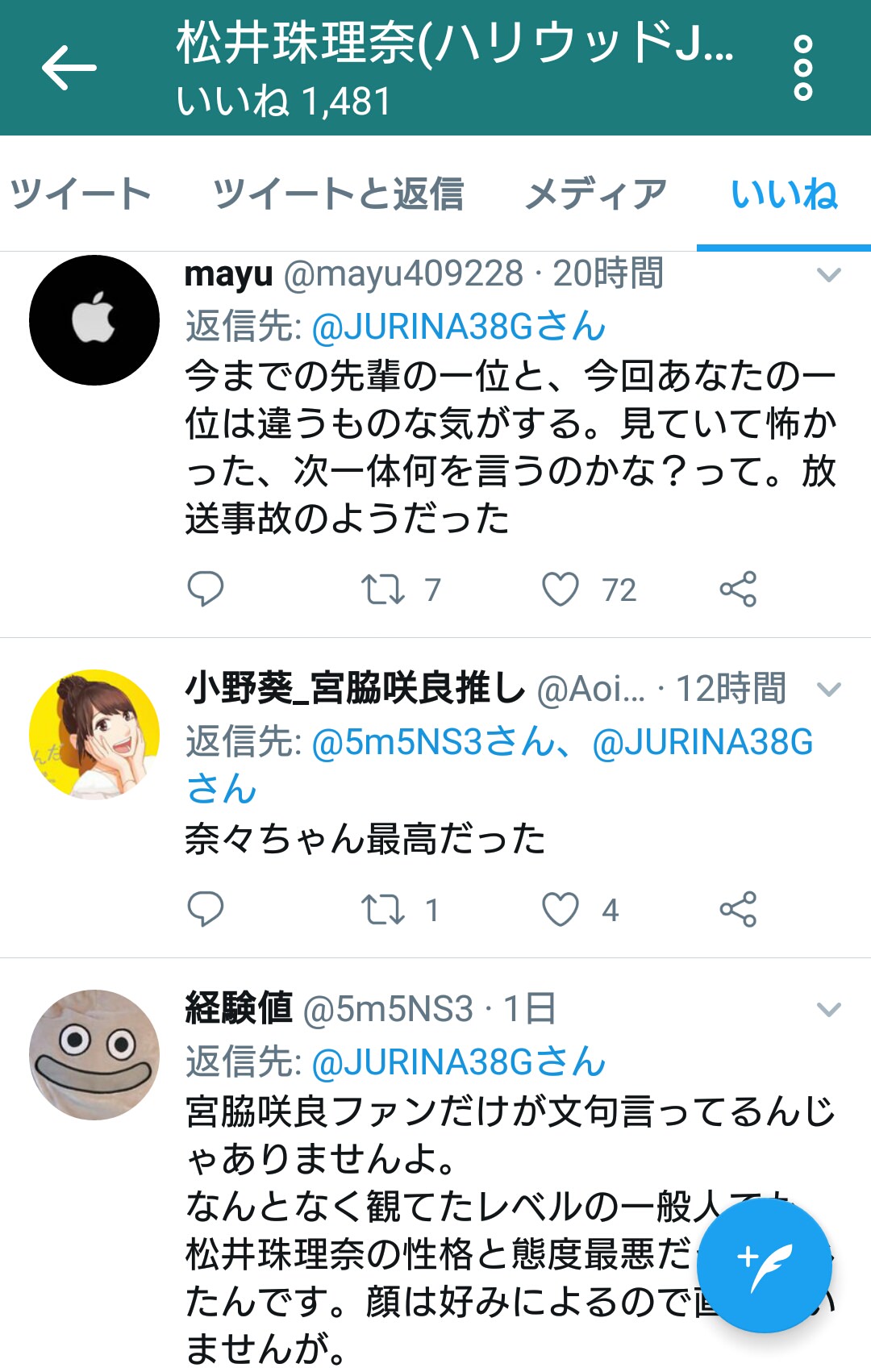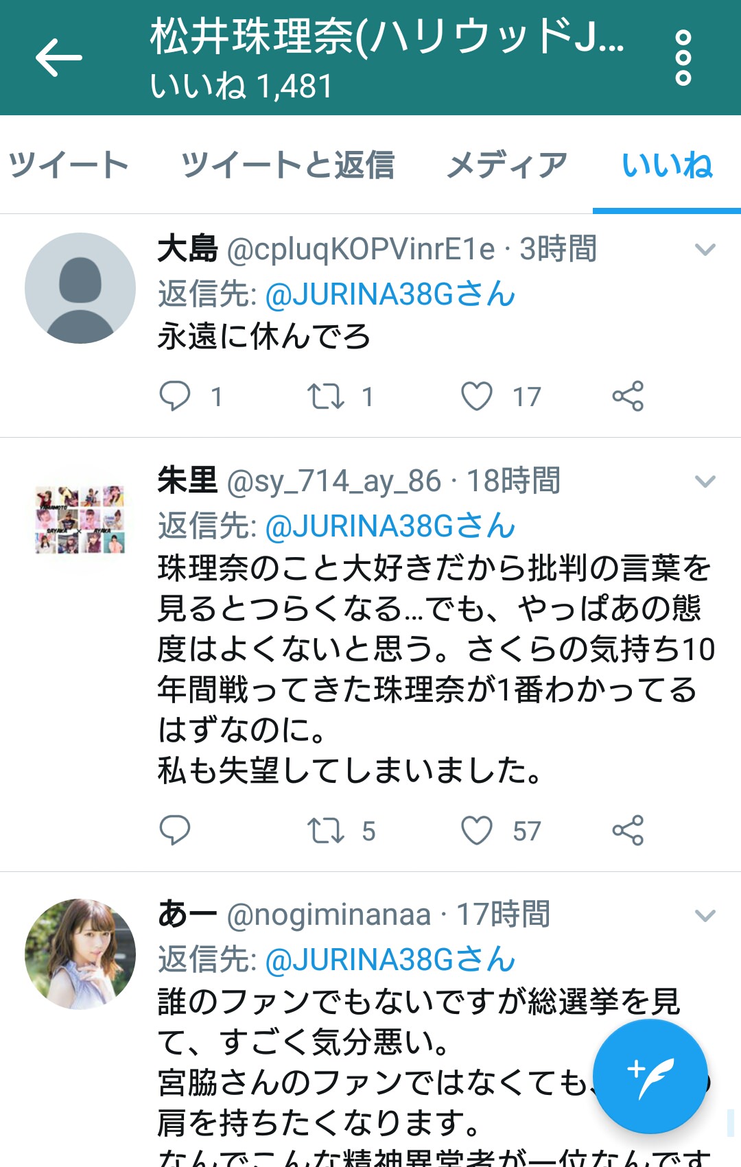 ■SKE48松井珠理奈ツイッター いいね欄