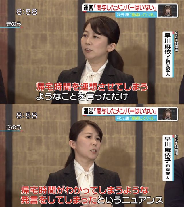 沈静化させるチャンスはありました。1月14日、AKB48グループの成人式の後に、AKSの松村匠取締役、早川麻依子・新NGT48劇場支配人ら3人が報道各社の取材に対応した時です。