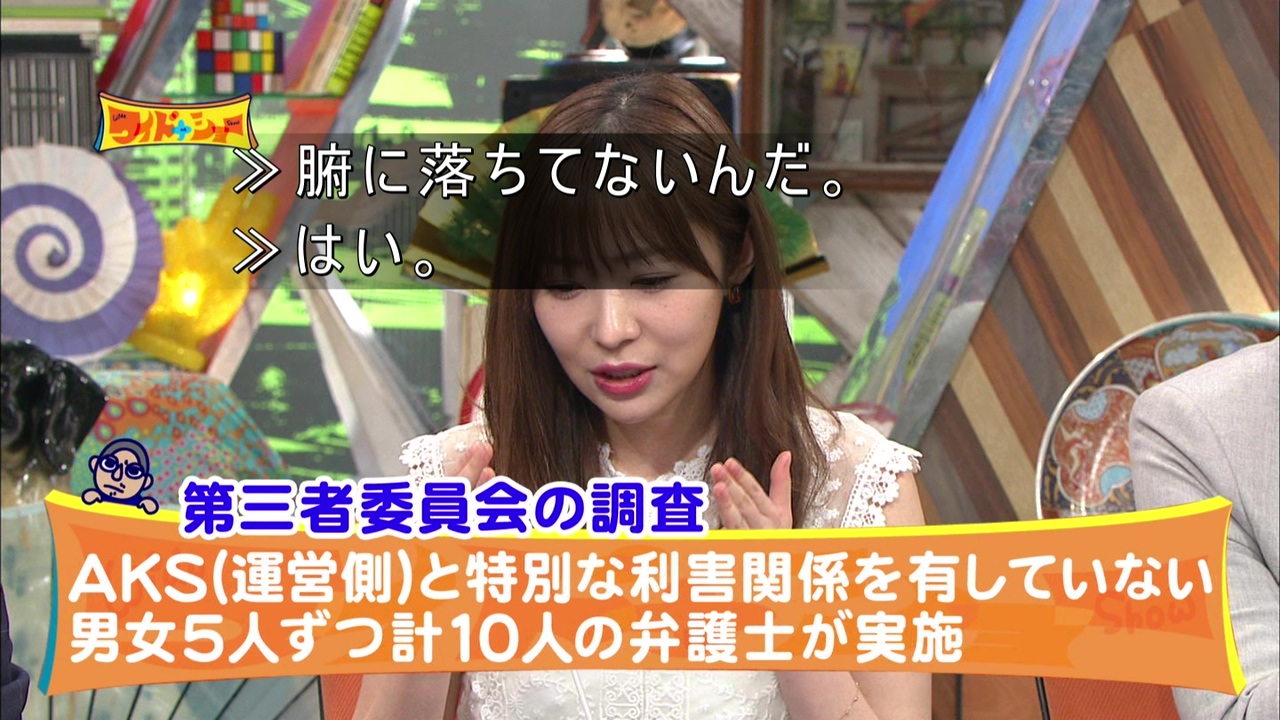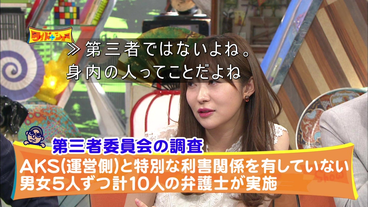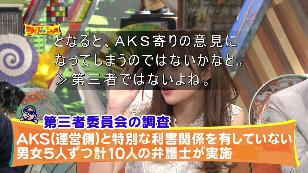指原「全員、納得はしていないんですが、見ていて第三者委員会の存在というのが私もよく分かっていなくてうちの会社のAKSが第三者委員会に依頼したわけじゃないですか。となると、AKS寄りの意見になってしまうのではないかなと。」