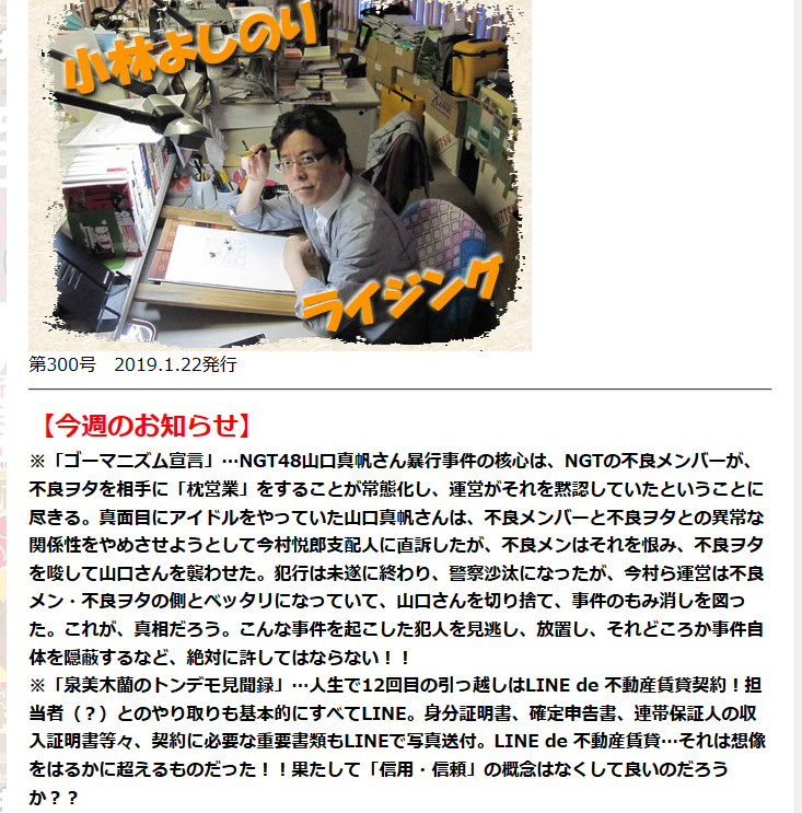 小林よしのり「NGT48の強姦未遂事件を隠蔽する運営に鉄槌を!」