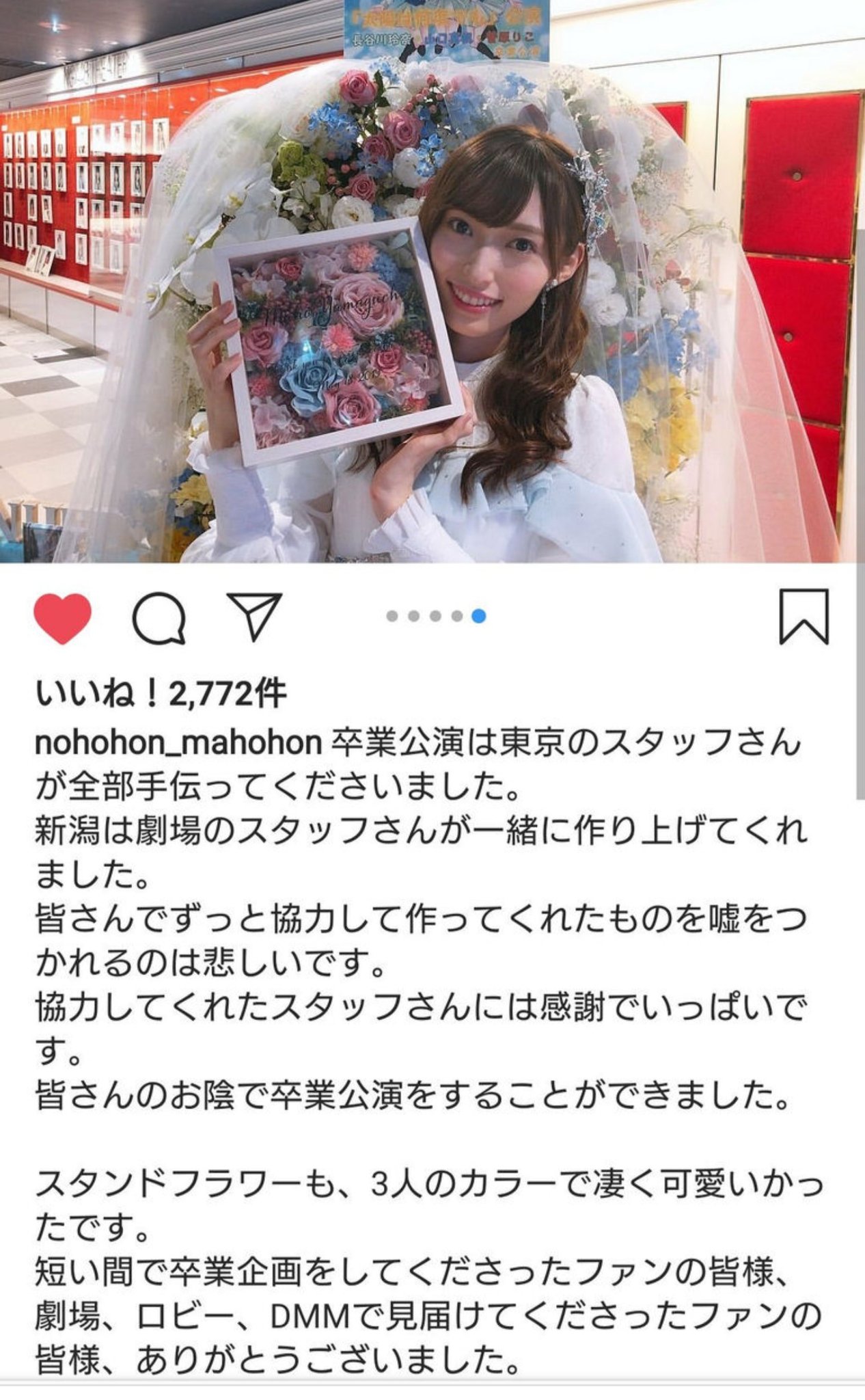まほほん「(卒業公演に出演した)7人は卒業公演のこと書かないように言われたから(そのときの集合写真は)私が載せます」
